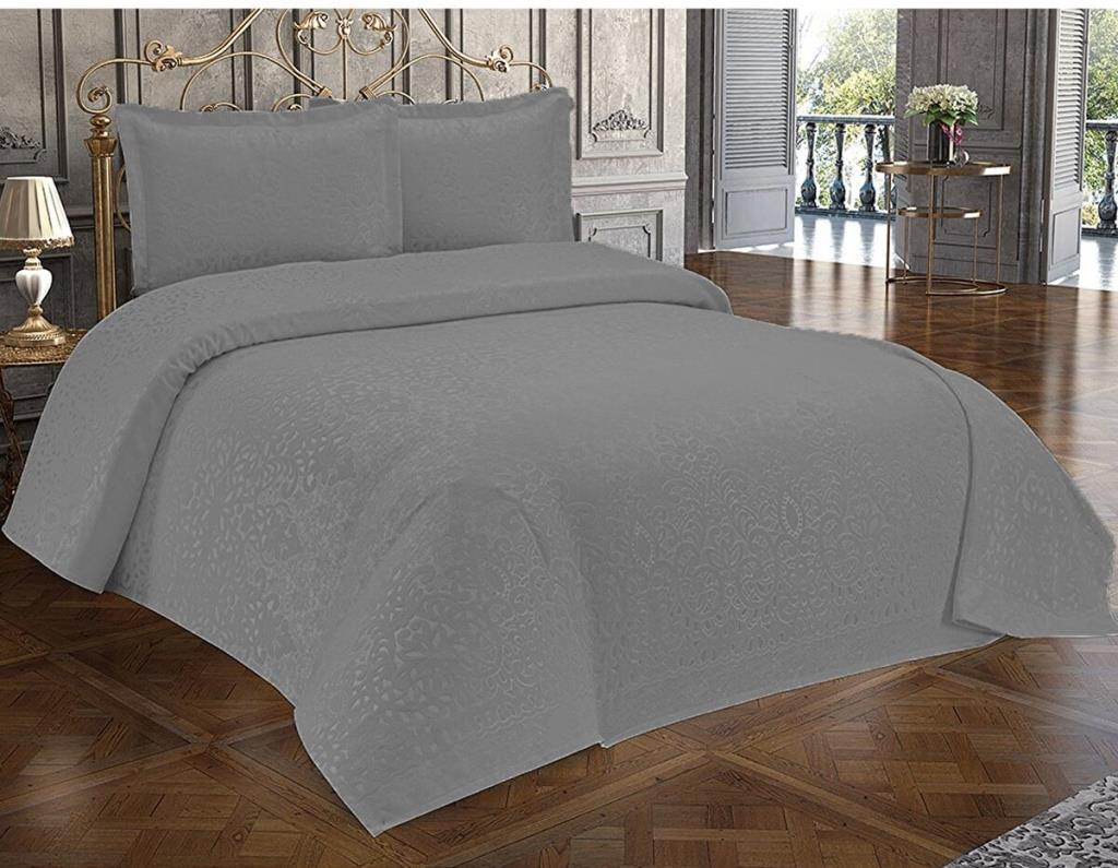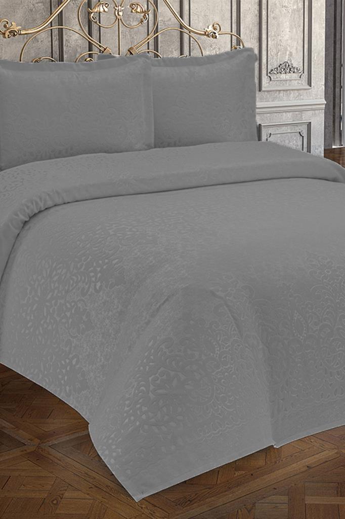 3 Parça Çift Kişilik Yatak Örtüsü Royal Gri