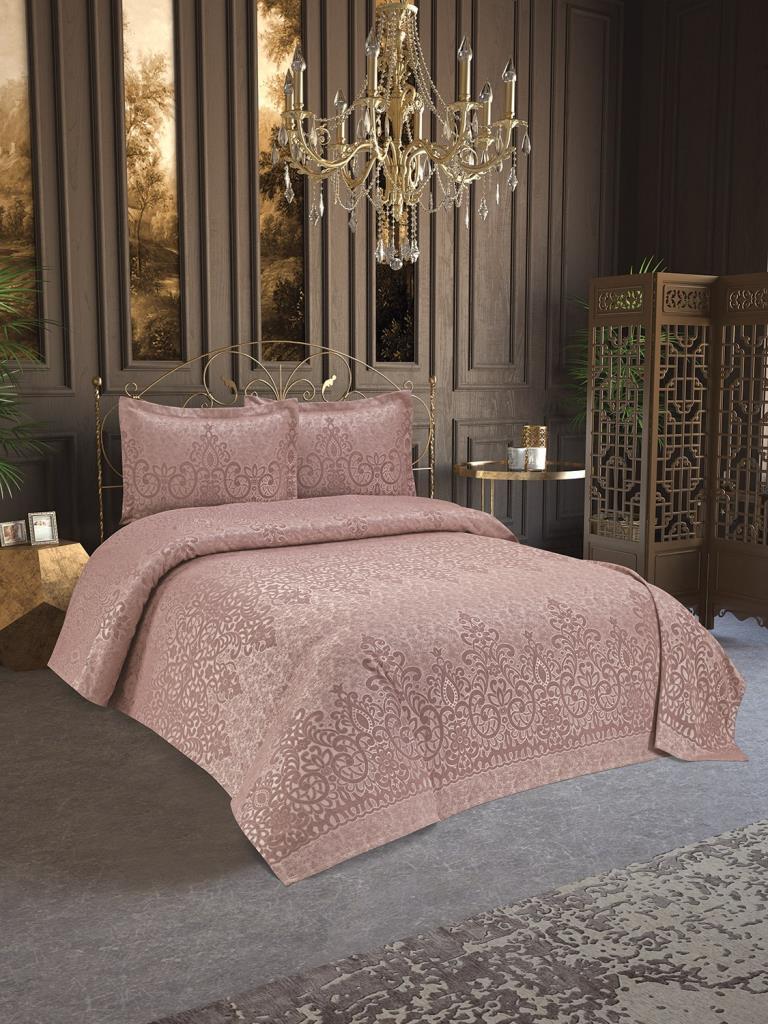 3 Parça Çift Kişilik Yatak Örtüsü Royal Pudra