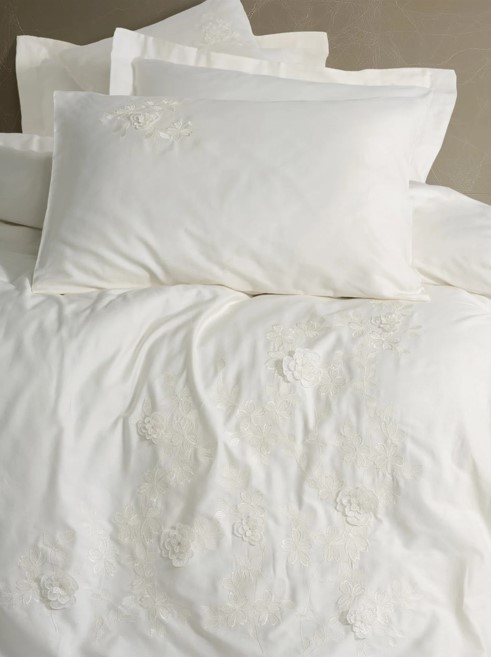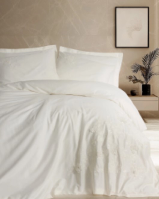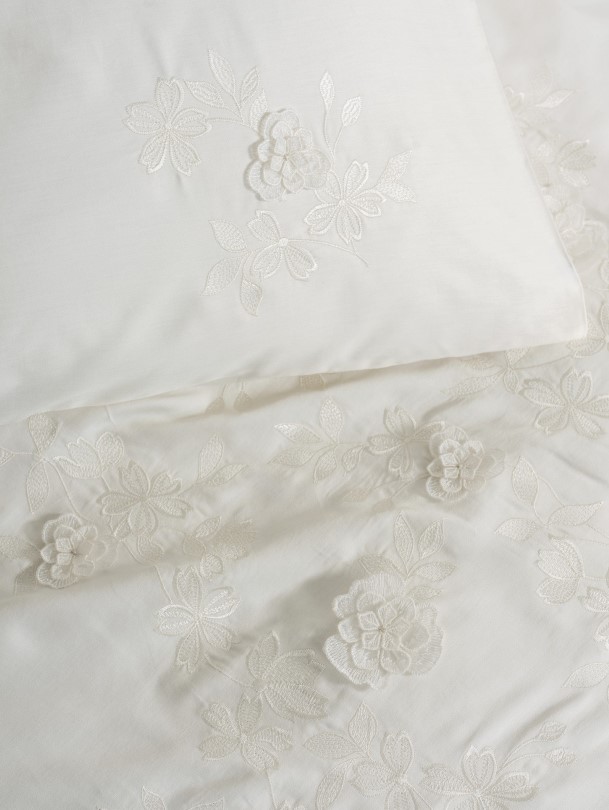 3D Nakışlı Çift Kişilik Saten Nev Takımı Chic Ekru - Lisinya