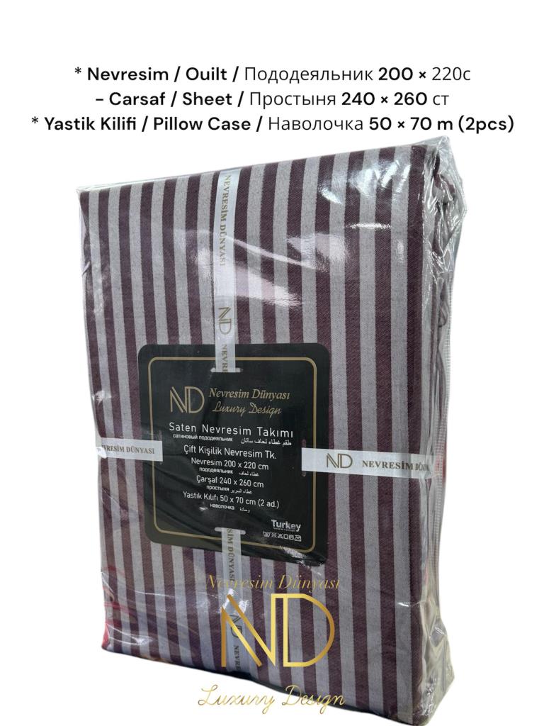 Çift Kişilik Çizgili Saten Nev Takımı Bordo