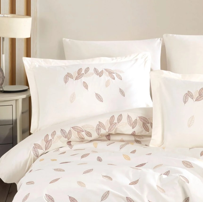 Çift Kişilik Poplin Premium Nakışlı Nev Lidia Krem - Lisinya