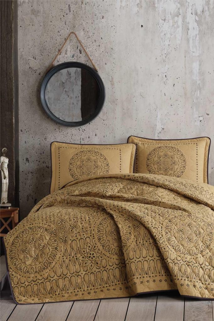 Çift Kişilik Yatak Örtüsü Merit V1 Hardal