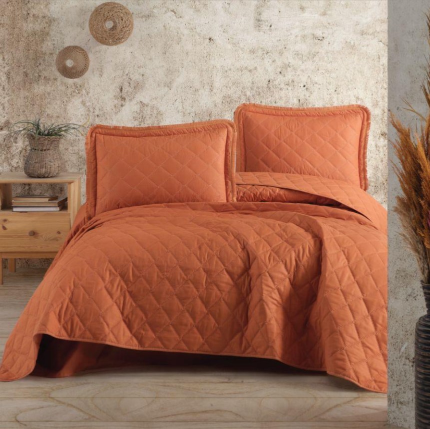 Çift Kişilik Yatak Örtüsü Tafana V2 Oranj